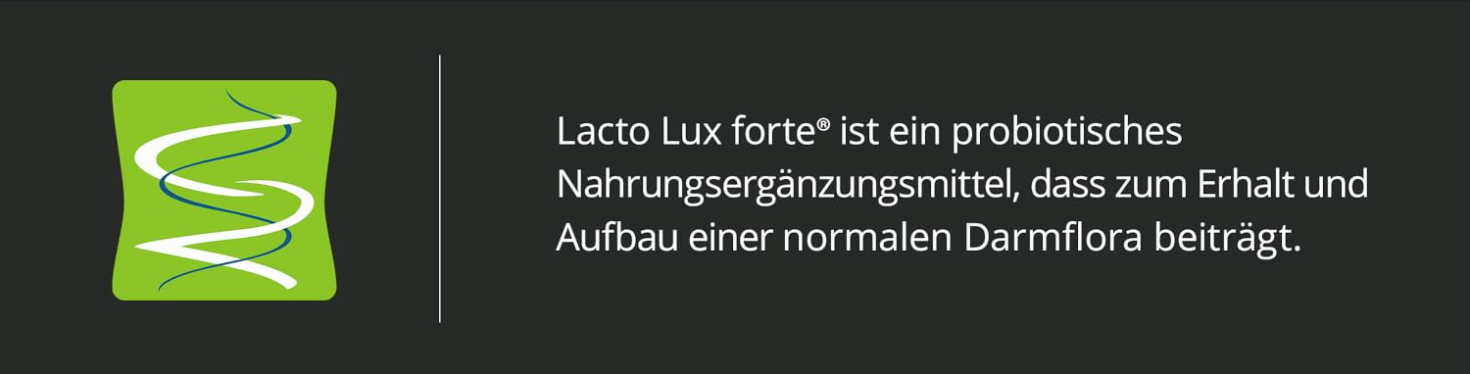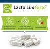 Lacto Lux forte® ist ein Nahrungsergänzungsmittel mit über 40 Milliarden aktiven Bakterienstämmen pro Kapsel, davon 400 Millionen genetisch unveränderte Stämme von Lactobacillus delbrueckii subsp. bulgaricus, der eine wichtige Rolle bei der Erhaltung und dem Aufbau einer normalen Darmflora spielt.